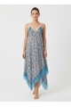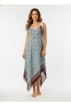 TÜLBENT MENDİL ELBİSE - ÇİNİ DESEN BORDO YEŞİL